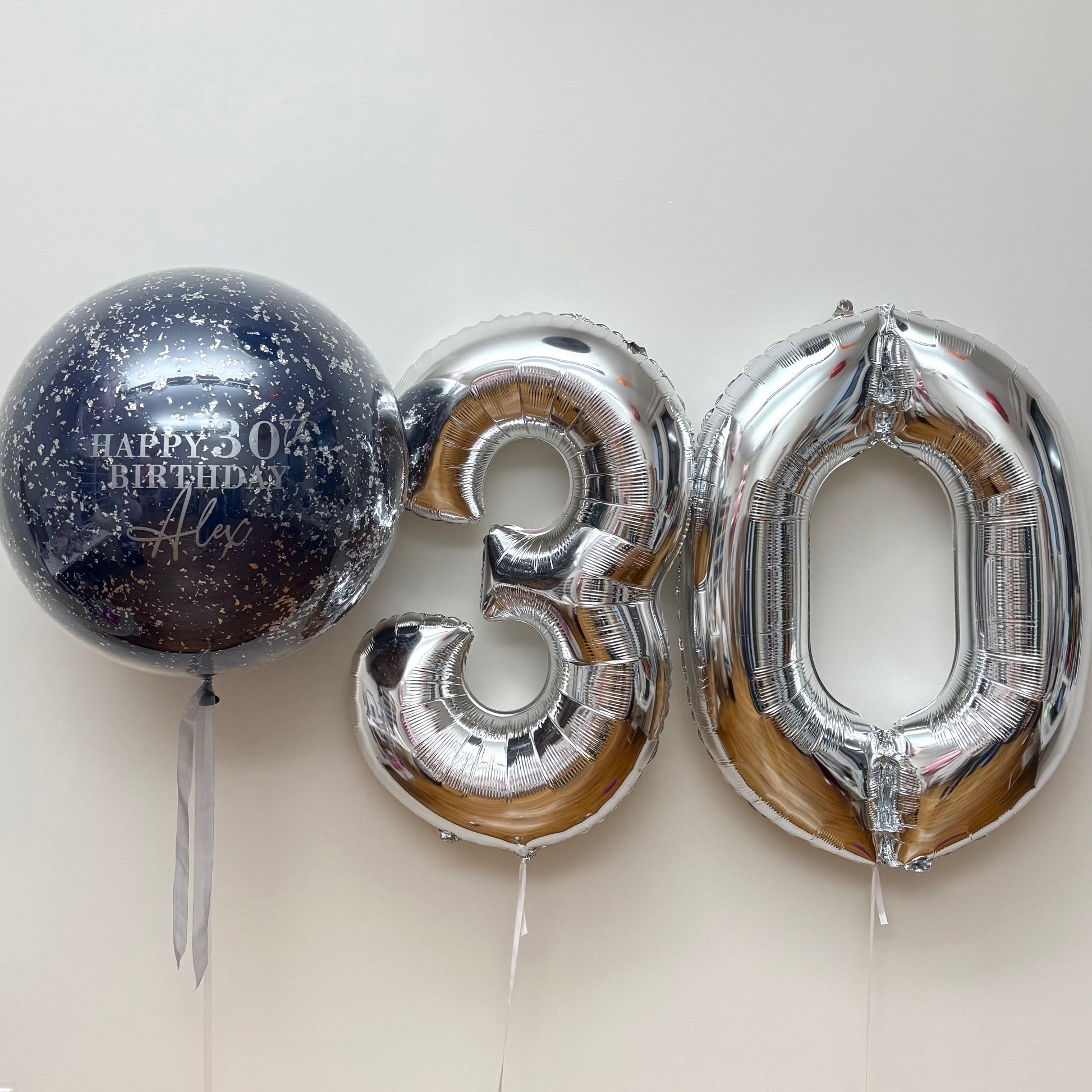 Jumbo sphere: Navy Blue with silver Confetti + write your own text